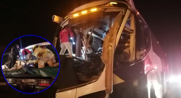El percance se registró en el kilómetro 73 de la carretera federal 57, en el municipio de San Luis de la Paz, en donde circulaba un autobús de pasajeros que se dirigía hacia la ciudad de Monterrey y se impactó contra un tráiler que transitaba en la misma vialidad.