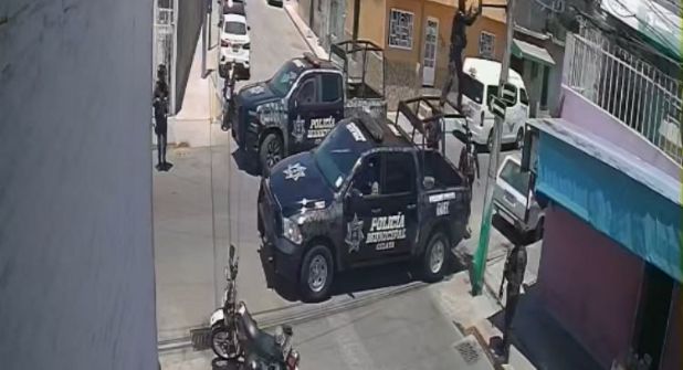 La policía municipal antes habría ingresado a un domicilio cercano, según se divulgó en redes sociales, por lo que antes de retirarse se dieron cuenta del aparato. Así, una de las patrullas maniobra y un elemento se sube a la estructura en la parte de atrás de la unidad para alcanzar la cámara. La retira de un golpe y la pasa a uno de sus compañeros.