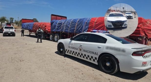 Irapuato.- Integrantes de la Guardia Nacional recuperaron un tractocamión con doble semirremolque cargado con 50 toneladas de maíz con reporte de robo.