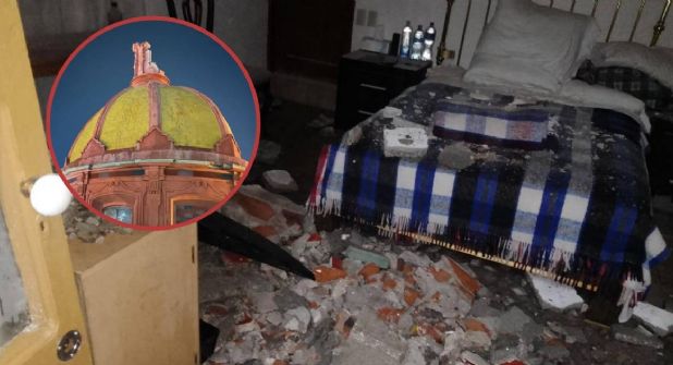Dentro de la habitación que se encontraba debajo de la cúpula quedaron pedazos de escombro de hasta más de 30 centímetros Y en el techo un gran agujero revelaba parte de la cúpula y el cielo oscuro que de pronto se iluminaba por los relámpagos que continuaban apareciendo.