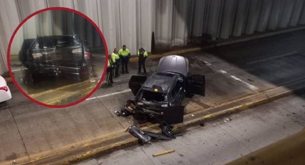 Los tubos que formaban parte del muro de contención en el puente también se cayeron debido al impacto de la camioneta que los desprendió de su lugar. Pedazos de la camioneta quedaron regados por todos lados.