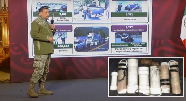 Señaló que a nivel nacional en 22 estados se han asegurado 2,803 artefactos explosivos durante este sexenio y el primer lugar lo tiene Michoacán con 1,411, le sigue Guanajuato con 664, Jalisco, 396 y en Chiapas 121.