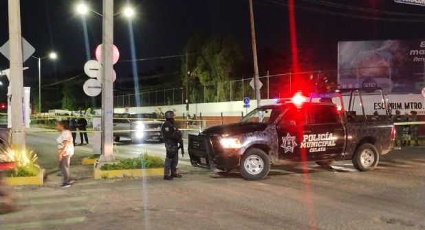 Celaya, Guanajuato.- Escoltas del secretario de seguridad de Celaya, Jesús Rivera, fueron atacados en la esquina de Irrigación y Anenecuilco cuando viajaban en una de las camionetas pick up doble cabina de la corporación. Reportes preliminares señalan un elemento sin vida y otro trasladado herido grave al hospital.