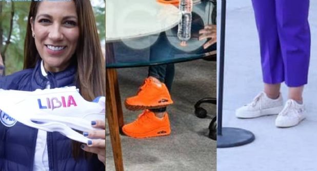 León.- Fosfo fosfo o personalizados con el nombre, la política hoy día también se lleva en los pies. Libia Dennise, Yulma Rocha y Ale Gutiérrez, han convertido de su estilo una marca personal que las identifica. Desde detalles pequeños como los zapatos ya se volvieron políticos.