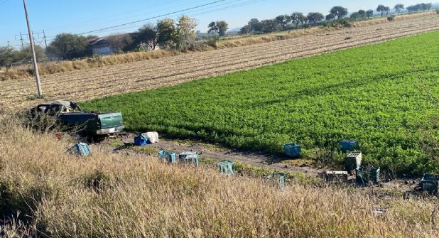 Viajaban en una camioneta Ford Lobo de doble cabina transportando un cargamento del fruto con dirección a Manuel Doblado, cuando presuntamente una falla mecánica hizo que el vehículo saliera del camino y volcara junto a un sembradío, a la altura de la comunidad Peñuelas.