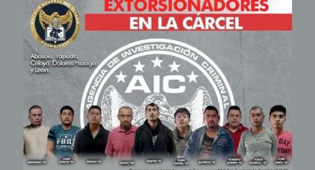 Guanajuato.- Ocho extorsionadores que operaban en agravio de comerciantes en los municipios de Abasolo, Irapuato, Celaya, Dolores Hidalgo y León, recibieron sentencias condenatorias y otros 2 más fueron vinculados a proceso penal.