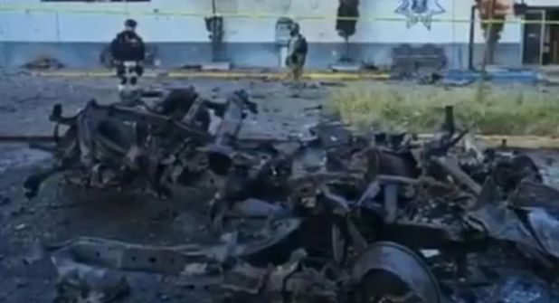 El video muestra lo que sucedió en las primeras horas del día: cuando un coche bomba explotó fuera del edificio de Seguridad Pública de Acámbaro y una patrulla de la Policía Municipal de Jerécuaro fue incendiada.