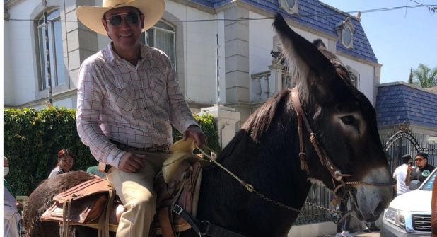 El burro llamó la atención de todos en la cabalgata que se dedica a San Judas Tadeo desde hace 4 años, se distinguía de entre los caballo por sus orejas y su hocico, era de un color café oscuro y blanco por debajo en su estómago