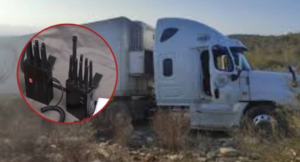 Aceptó y se bajo del tráiler, mientras tanto, elementos de la Guardia Nacional revisaron la cabina donde encontraron un artefacto con muchas antenas que identificaron como un inhibidor de frecuencias fijo de 8 bandas.