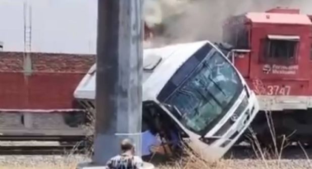 Celaya.- La tarde de este domingo en Celaya, un camión de transporte de personal fue arrastrado varias decenas de metros por el tren al intentar ganarle el paso, aunque solo se trataba de dos máquinas sin vagones.