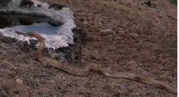 Victoria-. Una serpiente se arrastra lentamente hacia un bebedero de agua, llegó ahí desde zonas ignotas en la serranía guanajuatense, los bebederos construidos por el proyecto de conservación de Rancho La Onza ayuda a la fauna silvestre que habita en las montañas del municipio de Victoria.