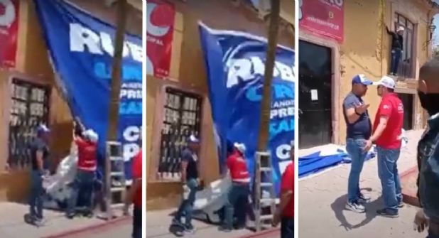 El hecho fue grabado en un video en donde se observa que integrantes del equipo de campaña del PRI quita una lona del PAN lo que provocó que los líderes campaña de ambos partidos se enfrascaran en una discusión acalorada.