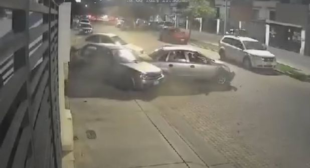 El coche continuó dando vueltas y moviendo a su paso a los dos vehículos estacionados, incluso ambos se impactaron contra la pared de las casas cercanas.