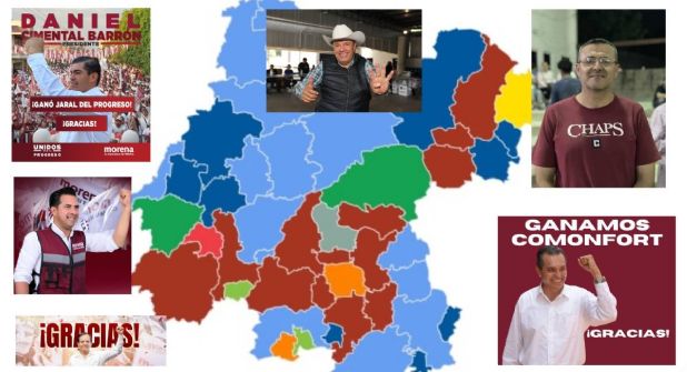 Antes de dar a conocer estos 13 municipios que se vestirán de “guinda”, mencionaremos los partidos ganadores en los 46 municipios: 10 (PAN), 3 (PRI), 1 (PRD), 2 (Verde), 2 (MC), 1 (PT), 1 (CI), 13 Morena y 13 (PAN-PRI-PRD).