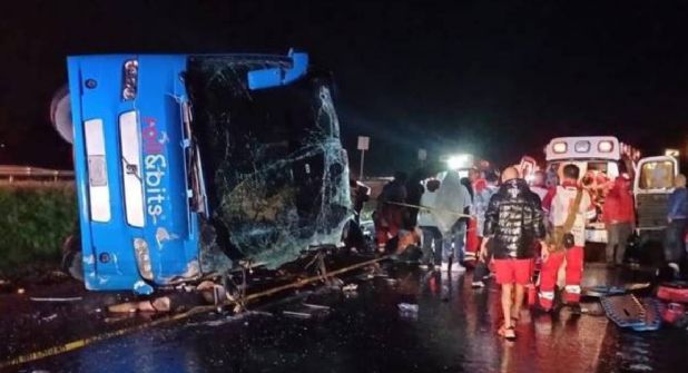 Alrededor de las 10:00 de la noche de este miércoles se registró la volcadura del camión de pasajeros y fue reportado al número de emergencias 911 y a Caminos y Puentes Federales (Capufe).
