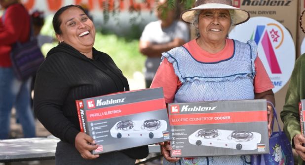 Irapuato.- Habitantes de las comunidades Lo de Juárez y Rancho Nuevo El Llanito, fueron beneficiados con parrillas, planchas, lavadoras, secadoras, tinacos y más, tras participar en los programas subsidiados por el Gobierno Municipal.