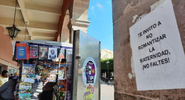 Lo que sí, es que el grupo feminista colocó algunos pequeños carteles en el kiosco del jardín principal y en edificios aledaños, igual con algunos mensajes como "si aborto o no, eso lo decido yo", "bendito el fruto de tu vientre solo si lo quieres", o "un aborto se puede realizar hasta la semana 24", entre otros.