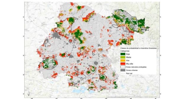 De acuerdo a uno de los mapas que proporciona el estudio, zonas como la Sierra de Lobos, en el norte de León, tienen una probabilidad muy alta de que se susciten incendios forestales, ya que es una extensa zona forestal próxima a la ciudad.