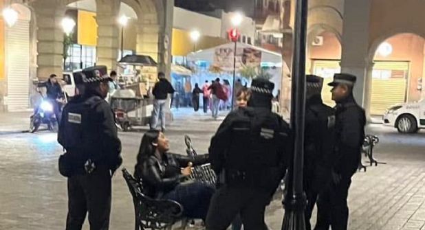 Las imágenes corresponden a este domingo por la noche en la zona del jardín principal de la zona centro de la ciudad, cerca del Portal Góngora, en donde los elementos federales realizan recorridos constantes como parte de los operativos de vigilancia para inhibir la posible realización de delitos.