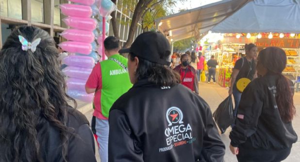 Los trabajadores de Grupo Omega Seguridad se encuentran desplegados en diferentes accesos de la Feria de León y apoyan principalmente a los conciertos y conferencias que ofrecen en el Foro Mazda. Muchos de ellos vienen de la Feria de Aguascalientes.