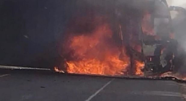Yuriria-. Esta tarde se registró un camión de pasajeros incendiado en la carretera Yuriria- Salvatierra por lo que el vehículo bloqueó este tramo carretero en ambos sentidos.