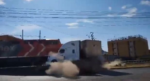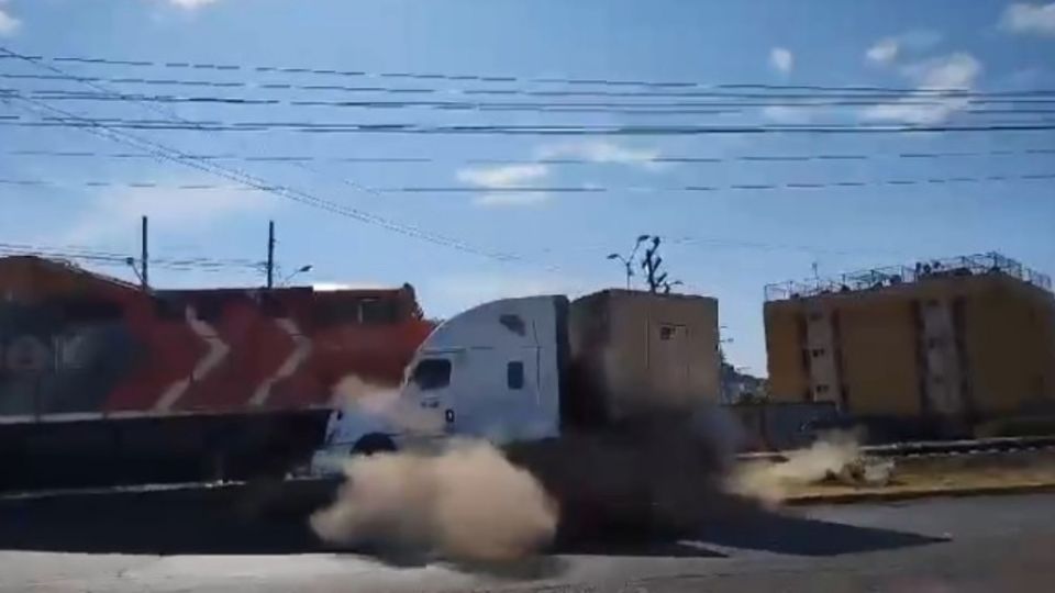 Según testigos, un tránsito obligó al conductor del tráiler que circulaba por a zona a dar la vuelta a la izquierda, tomando el camino hacia las vías del tren, argumentando que los transportes pesados y de carga no dben circular por la ciudad. Si embargo, al atravesar las vías el tráiler se atoró, lo que ocasionó que el tren lo impactara. Aquí el video: