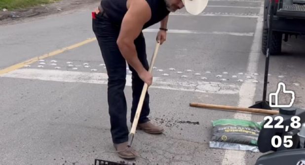 El influencer en pocos minutos tapó los hoyos de la carretera de Urireo y todo quedó grabado en un video que subió a sus redes sociales, lo que fue bien visto por miles de seguidores.