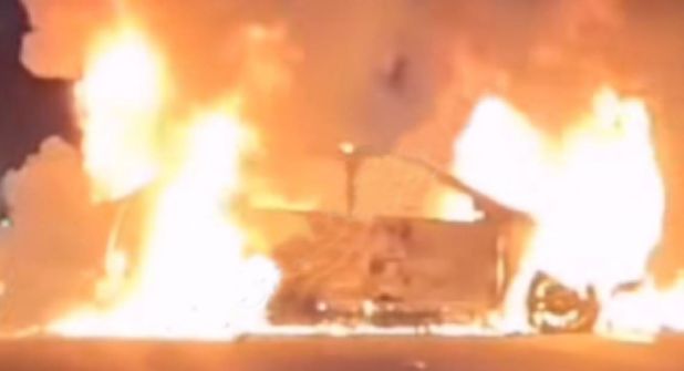 Tras el ataque a balazos, los agresores se acercaron a la camioneta y al parecer le prendieron fuego con una bomba molotov y huyeron.