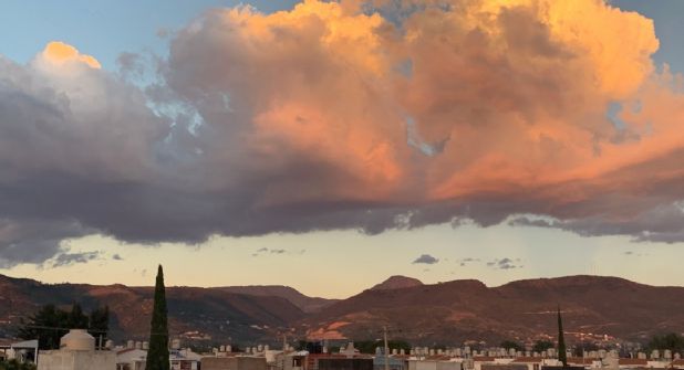El sol ya se escondía en el horizonte por la rotación de la tierra, la luz iluminaba las últimas vistas naturales de la ciudad, los pedazos desnudos de vegetación se vuelven rosados, y en la cima de los montes resalta el verdor de los bosques de encino que se encuentran más allá de los cerros en las cimas del El Gigante. Por encima una nube en diferentes tonos acompaña a aquel paraje.