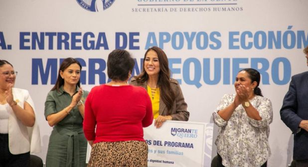 En la nueva jornada de acompañamiento y trabajo conjunto del estado con las familias migrantes, la mandataria explicó que los 75 apoyos económicos representan una inversión de 1.2 millones de pesos.
