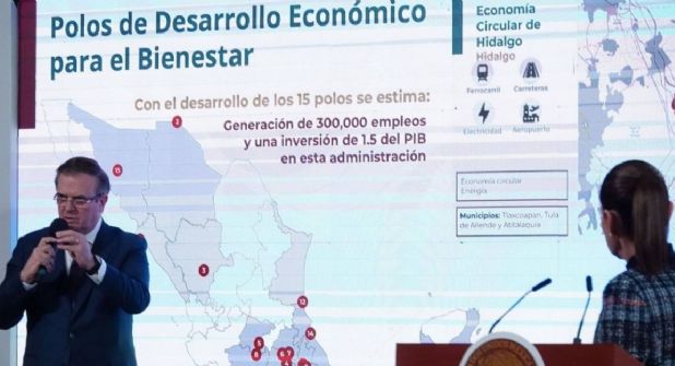 Ebrard Casaubón explicó que los polos del desarrollo son sectores económicos estratégicos ya establecidos en el Plan México, con el desarrollo territorial de regiones en zonas estratégicas del País, y vincular a las pequeñas y medianas empresas. Que haya prosperidad compartida, es decir, que la riqueza se traduzca en bienestar.