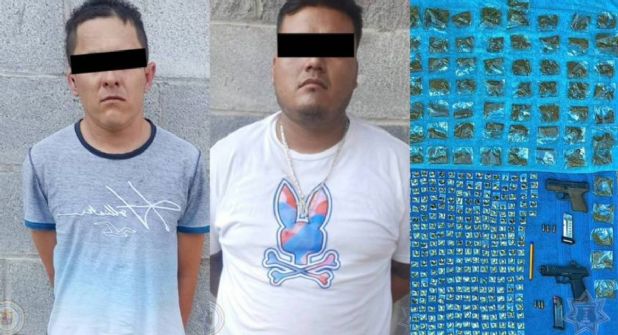 León.- Dos hombres fueron detenidos por la Policía de León tras un operativo en la colonia Valle de Jerez, donde se les aseguraron armas de fuego y más de 500 dosis de droga.