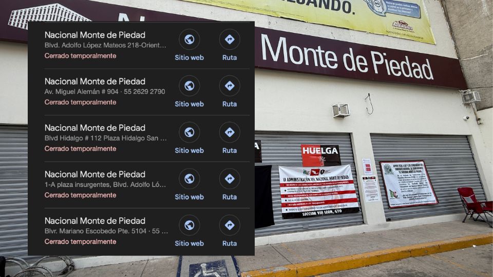 León, Guanajuato.- Las cinco sucursales del Nacional Monte de Piedad en León, Guanajuato, permanecen cerradas debido a la huelga que estalló a nivel nacional y que ha dejado sin servicio a miles de usuarios que dependen de la institución para refrendos, pagos y recuperación de empeños. Todas las unidades de la ciudad se mantienen sin operación desde la madrugada del 1 de octubre y continúan así mientras el conflicto laboral no sea resuelto.