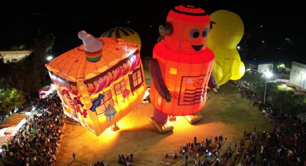 Una casa de jengibre, un robot, un pato y 2 globos comunes, amarillo y de recuadros, se movieron al compás del viento, se mantuvieron en el piso, pero no dejaron de iluminar y calentar el ambiente.