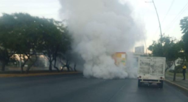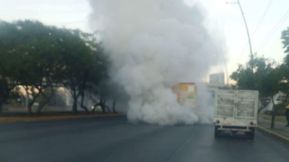 Quienes viajaban por el bulevar de pronto se percataron que del camión salió una gruesa columna de humo y en el Juan Alonso de Torres se alzo un humo gris que obstaculizó la visión de los conductores.