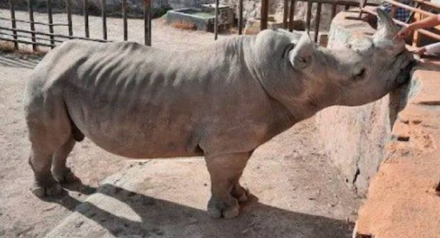 La piel de un rinoceronte sano llega a ser de 5 centímetros de grosor. Es aspera. Parece una armadura. No la del rinoceronte que resguarda el zoológico. Es un índice claro de pérdida de masa muscular que indica desnutrición severa, señala la divulgadora.