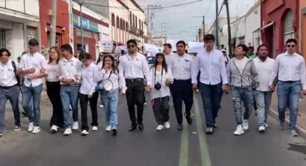 Poco después de las 9 de la mañana salió el contingente de las instalaciones del campus 1 del Tecno, donde la convoctoria pedía vestir de blanco y llevar pancartas alusivas a esta manifestación. Algunos tomados de la mano o “enganchados” de los brazos, tomaron camino por la calle Insurgentes, Benito Juárez, Hidalgo hasta llegar a la zona centro, encabezados por el director del Tecnológico, Ernesto Lugo.