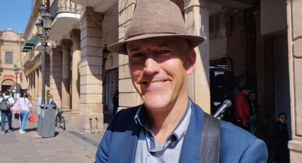 "Ya vivo aquí en León, tengo un rato, vine a estudiar español a México y me encantó Guanajuato, y pues decidí quedarme aquí, estudié música desde que era niño, empecé con el corno francés en la orquesta infantil de la escuela, luego pasé a la batería y después la guitarra, siempre me han interesado los instrumentos, tengo más de 35 años tocando, no tengo plan de mudarme, estoy muy a gusto en León".