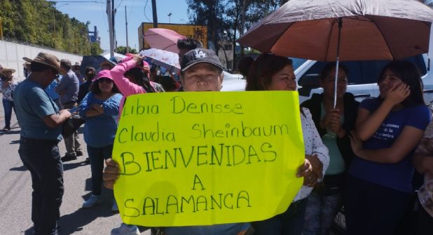 En la entrada principal de la planta de la CFE, también se reunieron habitantes del municipio de Acámbaro, quienes pidieron a la presidenta, la construcción de casas de Infonavit para mujeres trabajadoras.