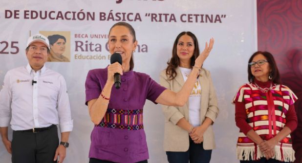 León, Guanajuato.- Esta mañana la Presidenta de México, Claudia Sheinbaum hizo una visita sorpresa a la secundaria Sor Juana Inés de la Cruz donde se entregaron tarjetas de las becas universales Rita Cetina.