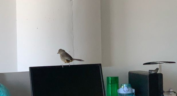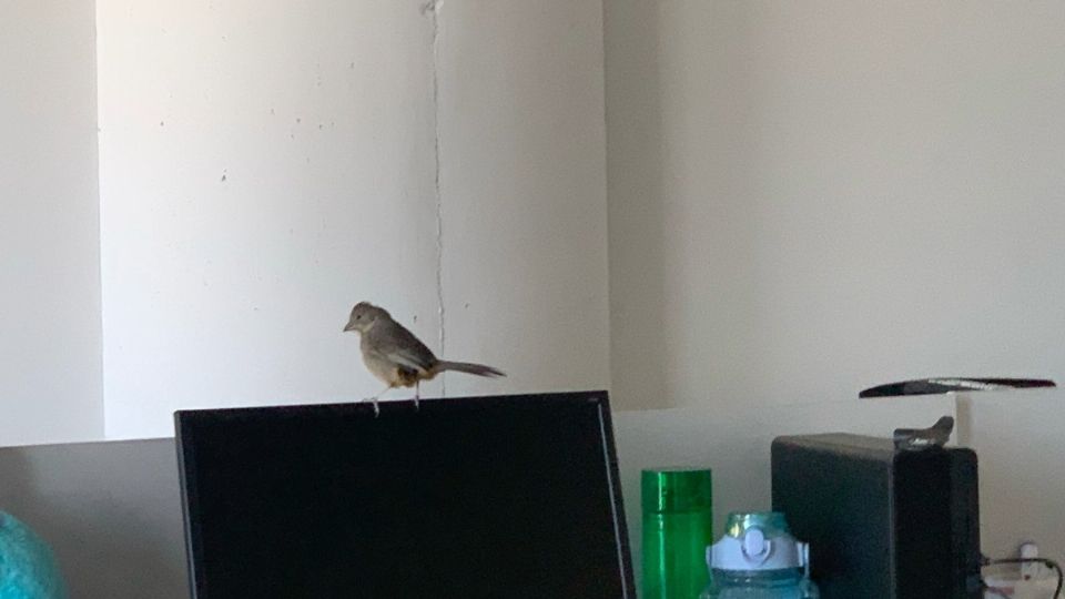 Una mañana el gorrión entró volando por la puerta, confundido, buscaba alimento (¿Quizá atraído por los insectos?), así se quedó dentro de una de las oficinas del edificio de la Plaza Stadium. Se mudó por un tiempo, nadie se explica cómo pudo llegar hasta allí ¿Cómo pudo atravesar varias puertas de cristal hacia la planta alta? Aunque en realidad ya no pudo encontrar la salida hacia afuera para volver a ser libre.