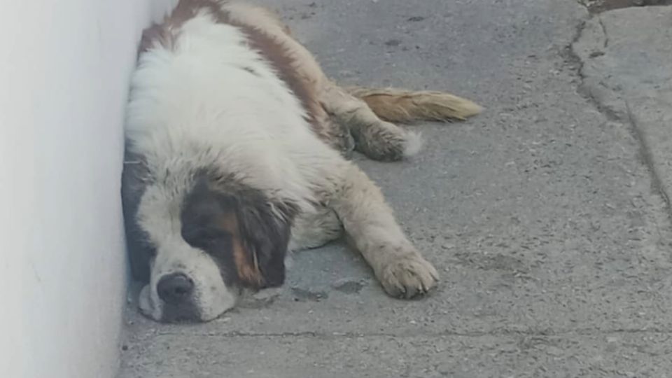 El San Bernardo llegó por la mañana y, cansado de caminar, de deambular por la ciudad, cayó exhausto en una de las aceras de la calle de Emiliano Zapata. Hasta que Ángela lo observó tirado sobre la banqueta, vio que no se movía, y de inmediato pidió apoyo.