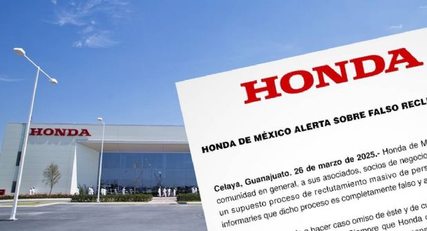 “Honda de México alerta a la comunidad en general, a sus asociados, socios de negocio y clientes, sobre un supuesto proceso de reclutamiento masivo de personal. Queremos informarles que dicho proceso es completamente falso y ajeno a la empresa".