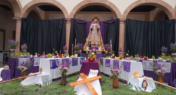 En las calles calurosas de los barrios de León, con un sol inclemente, las casas, chicas o grandes, muestran sus altares con sus siete pisos repletos de flores y frutas, con el fin de acompañar a la virgen en su dolor.