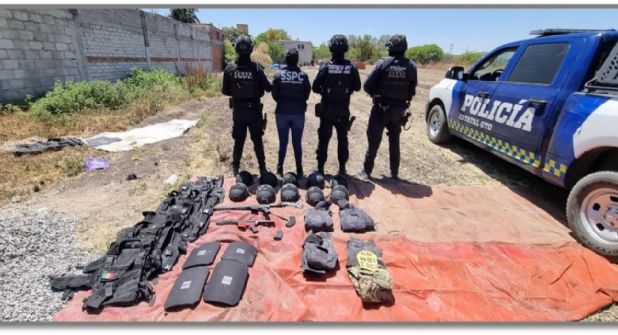 Etre el armamento asegurado destacan fusiles calibre 223 y 7.62, chalecos, cascos, placas, camisolas, y una motocicleta. Hasta el momento, las autoridades no han compartido la identidad de los responsables ni hay detenidos.