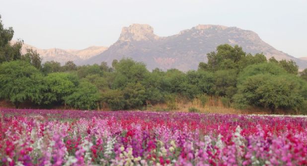 Un sembradío colmado de flores distrae la mirada de los automovilistas que viajan en dirección a Guanajuato, a un costado de la carretera, resalta un extenso campo de cultivo repleto de flores de colores, tonalidades que recuerdan a la primavera, al Viernes de Dolores y la Semana Santa.