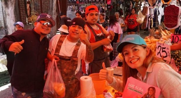 Luz Elba de La Torre Orozco ha recorrido diferentes tianguis en la ciudad como Villas de San Juan, el de Flores Magón y San Sebastián, ella compite para el cargo del Magistrada en Circuito en materia penal.