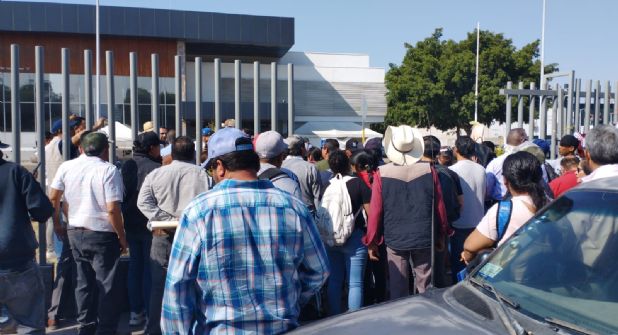 Guanajuato.- Más de 700 campesinos bloquearon las instalaciones del sistema de administración tributaria este martes para exigir apoyos federales que les fueron retirados este año.