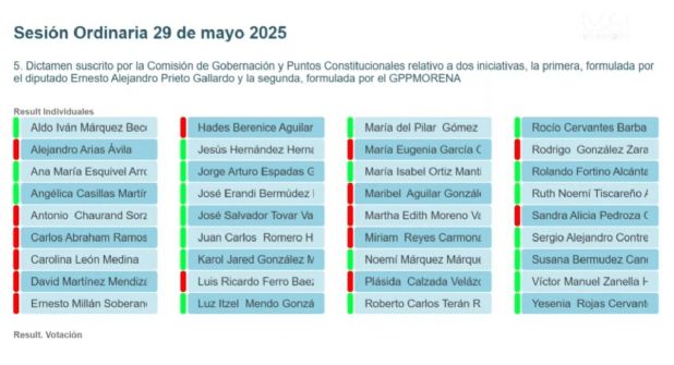 Votación 1.- Dictamen de la Comisión de Gobernación y Puntos Constitucionales. ¿De qué trata? De eliminar de la Constitución del Estado el párrafo que dice que “persona es todo ser humano desde su concepción, hasta su muerte natural. Ambos supuestos ya han sido declarados inconstitucionales por la Suprema Corte de Justicia de la Nación, porque niegan el derecho a decidir de las mujeres y el derecho a la voluntad anticipada y cuidados paliativos en caso de muerte. Se trata de que se tenga decisión del propio cuerpo con algún grado de libertad y sin condena.