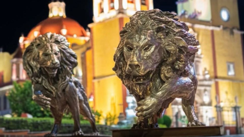 Guanajuato-. Dos grandes leones de bronce fueron situados en uno de los lugares más icónicos de Guanajuato. Sobresalen de entre las calles, feroces, y con las fauces abiertas. Ambos felinos son obra del artista Javier Hernández Capelo.
